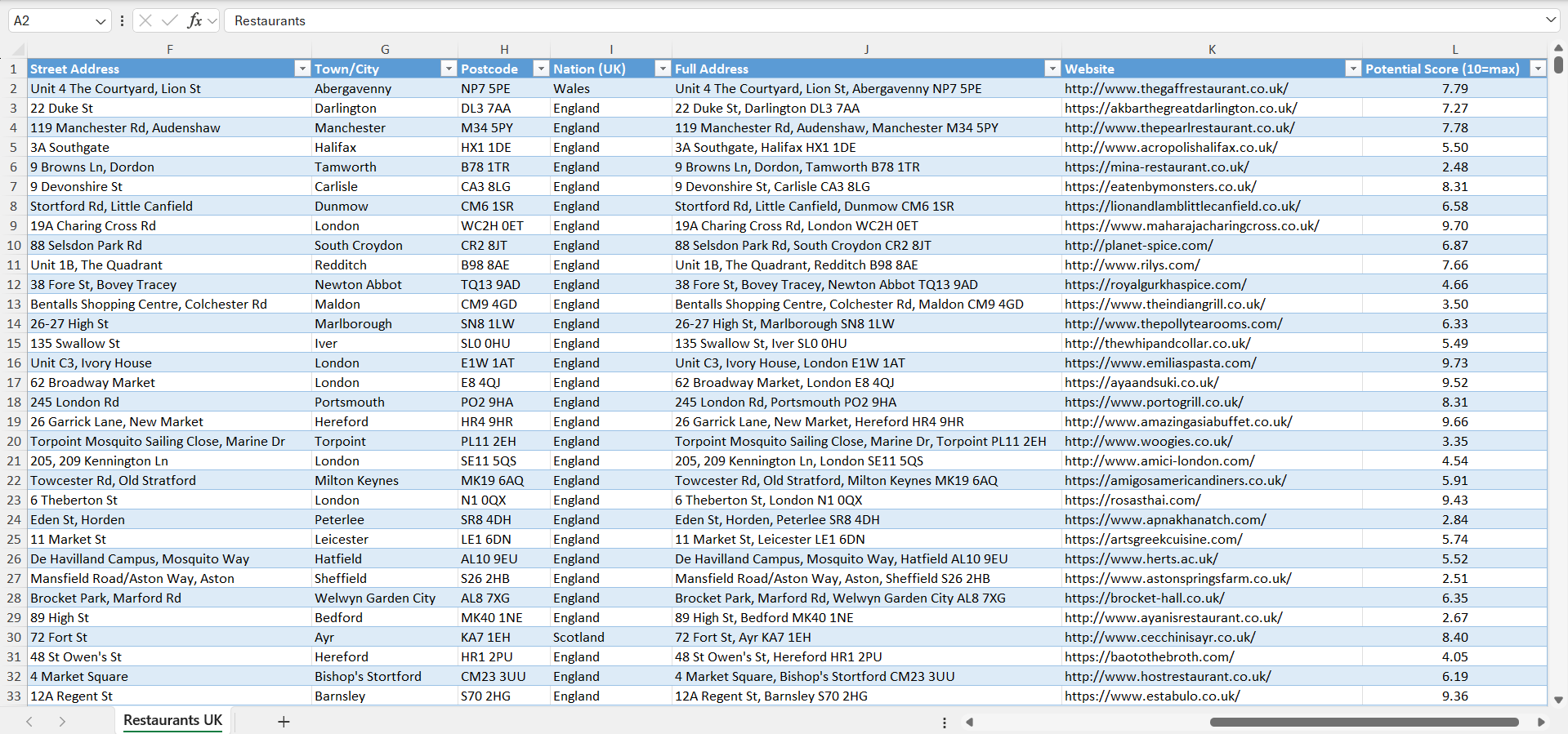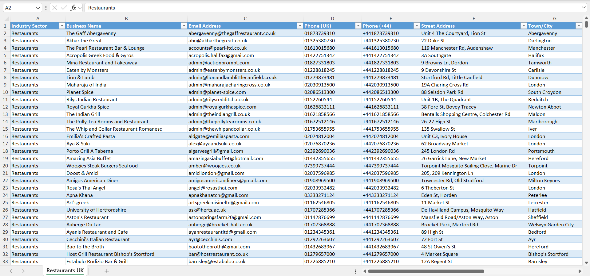 This database contains the contact data of all restaurants in the UK that we have identified.